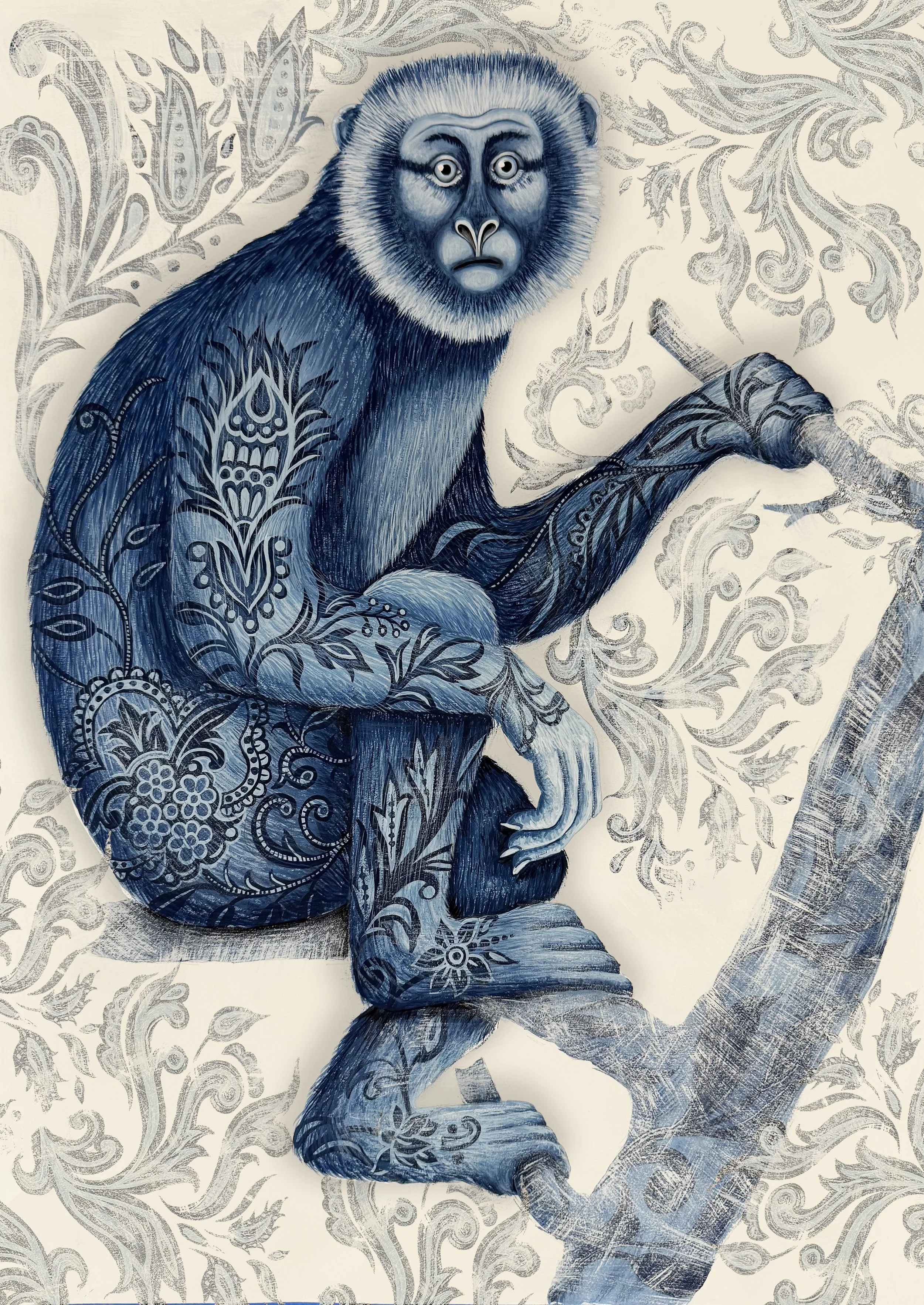 In my current textile installation work, I strive to create large-scale allegorical narratives that utilize analog and digital craft and technology. As a textile designer and an artist, I hope my work suggests a fusion between clean elegant design, and the raw underpinnings of creative expression. I am preoccupied by the dichotomies within the human condition, and notions pertaining to gender, mortality, existence, and sexual identity. Much of my work is informed by global historic iconography and nature studies, as well representations of endangered species, and the oncoming Anthropocene. As an interdisciplinary artist, my work is a synthesis of several methods of artistry, including painting, drawing, stitching, and printing with large-format digital printing technology. I hope my digitally printed textile installations ignite deep spiritual forays into the imagination, and generate personal reflection on what is hidden, whether it be our own personal demons, or our lust for life.